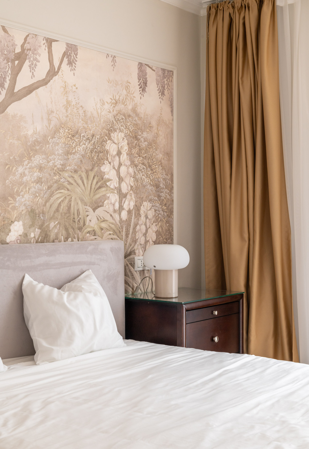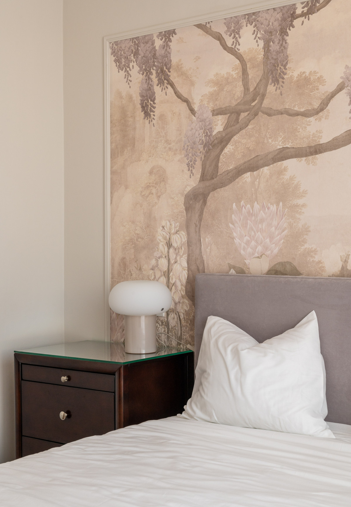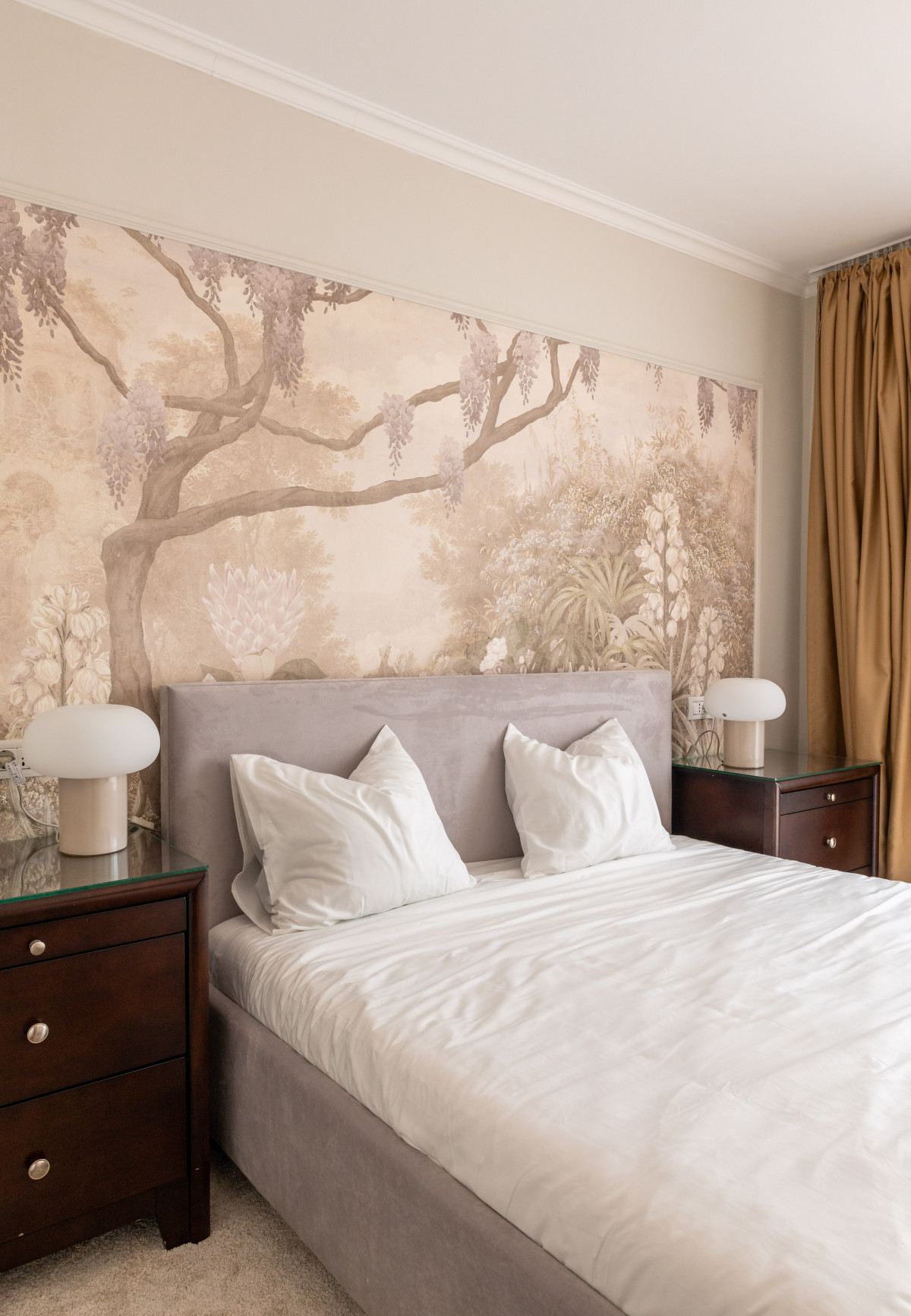 Tapet cu design glicină într-un living modern Tapet cu design glicină într-un living modern