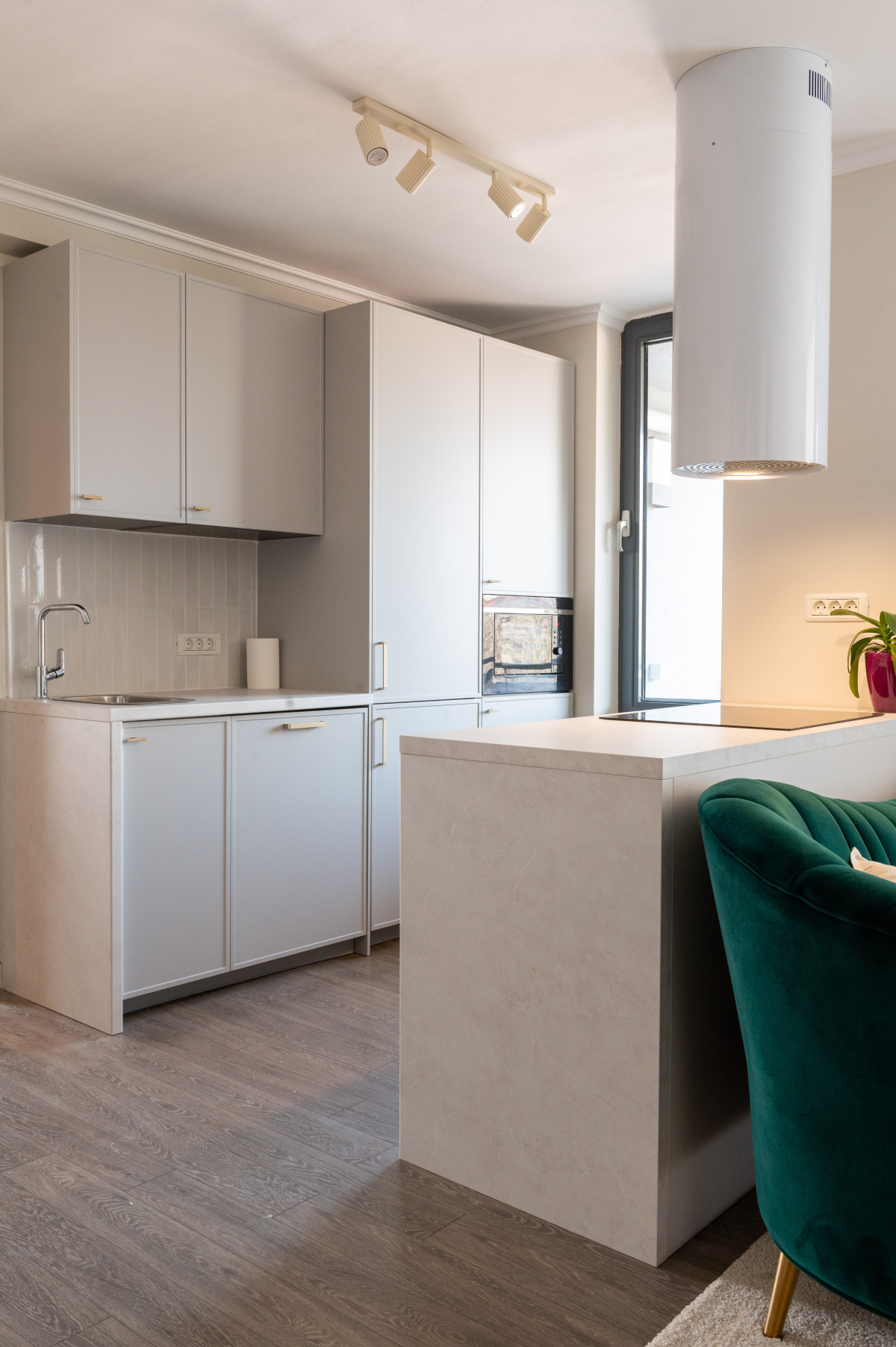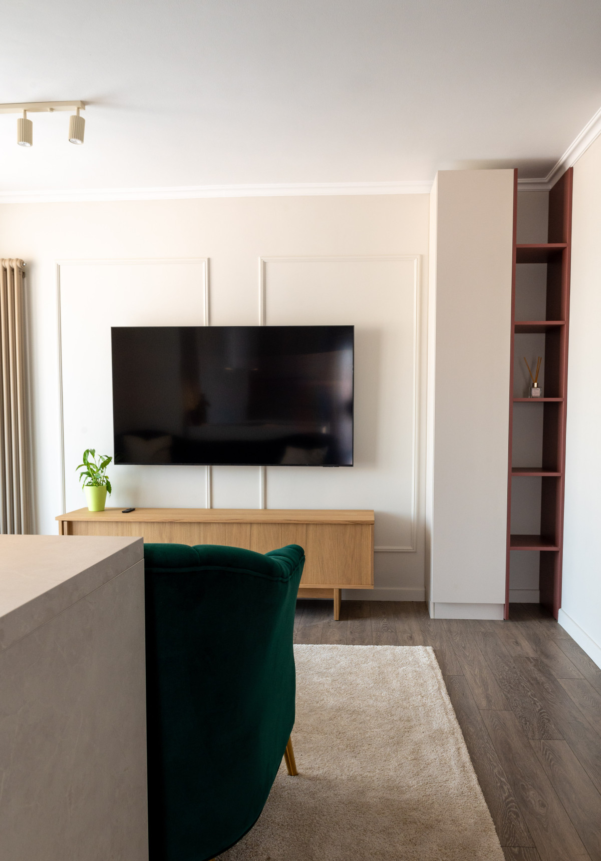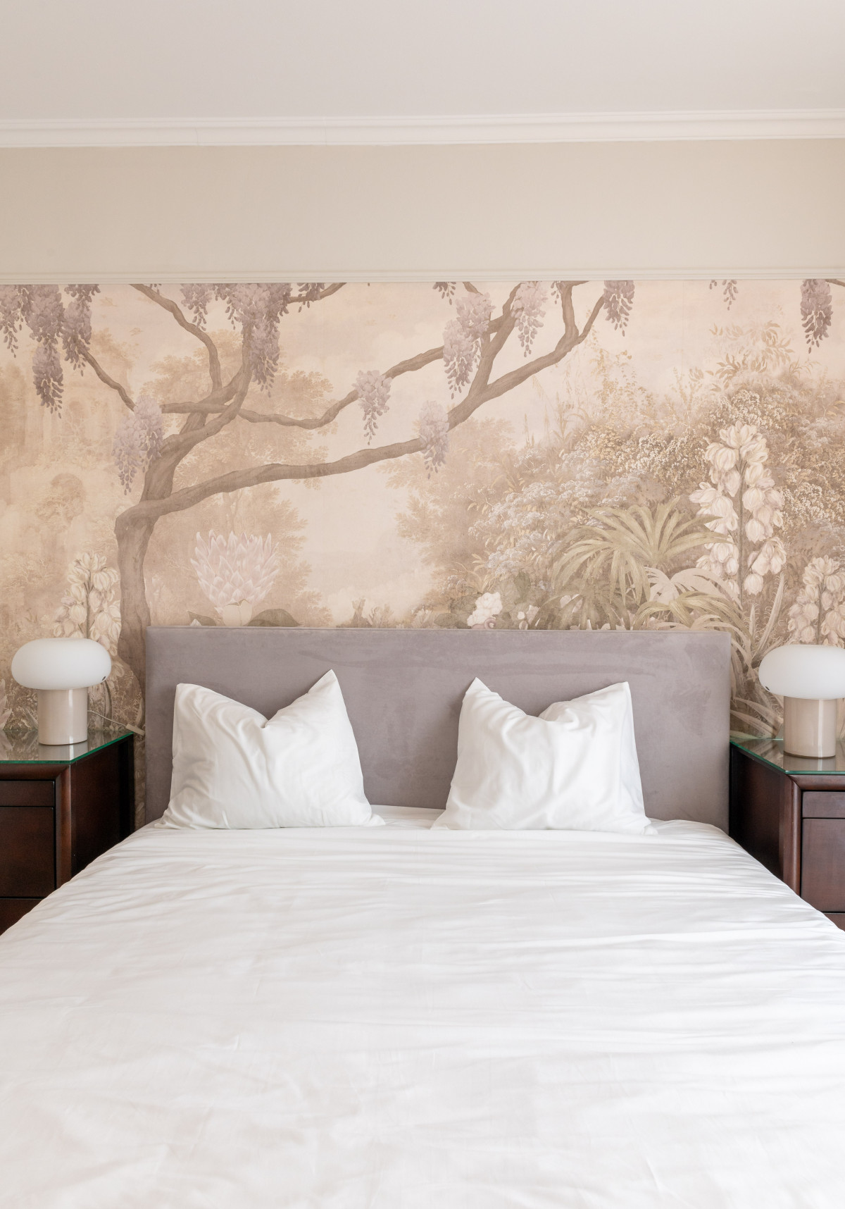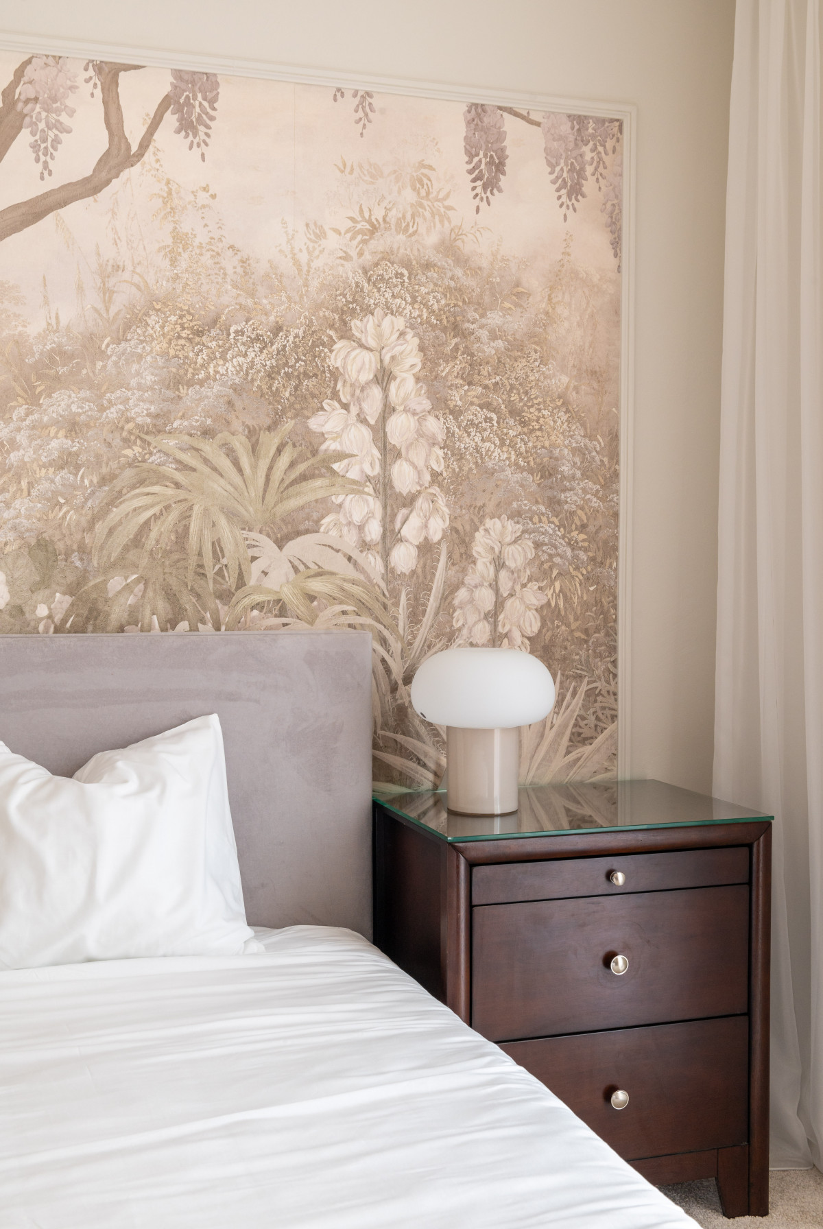 Tapet cu design glicină într-un living modern Tapet cu design glicină într-un living modern